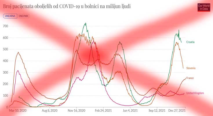Nažalost potpuno isto se događa kada je riječ i o covid umrlima, naime, umrli od raka ili neke druge teške kronične bolesti ubraja se pod umrle od covida samo zato što su bili testirani kao pozitivni. U nekim državama se ide toliko daleko da se posmrtnim testiranjem poginule u prometnim nesrećama ubraja među umrle od covida.