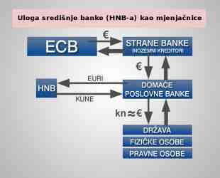 Naša centralna banka (HNB) ne funkcionira kao ostale centralne banke, te umjesto da izravno posuđuje novac poslovnim (komercijalnim) bankama, traži od njih da se vani zadužuju u eurima koje potom kod HNB-a mijenjaju u kune. Drugim riječima umjesto kao banka HNB funkcionira kao mjenjačnica (sličan monetarni model odveo je i Argentinu do sloma). Zbog toga svi krediti imaju valutnu klauzulu, budući da novac pušten u opticaj ima pokriće u vanjskom dugu.