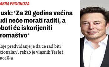(Analitički članak povodom Muskovih izjava) Jutarnji list prenio je izjavu Elona Muska kako će roboti ukloniti siromaštvo, jer će ljudi dobivati dovoljno novca “bez obzira rade li ili ne”. …
