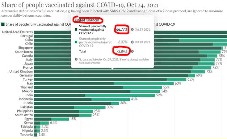 U Britaniji cijepljeno je gotovo 70% populacije, dok 78% umrlih, prema Agenciji za zdravstvenu zaštitu Britanije, čine potpuno cijepljeni.